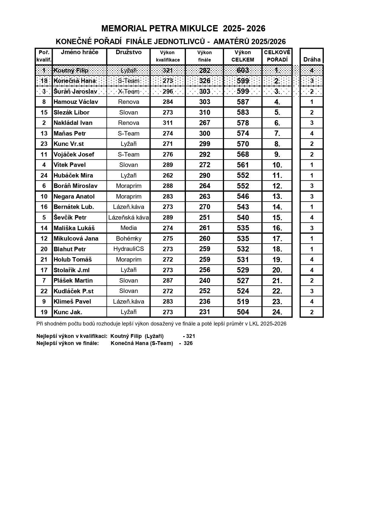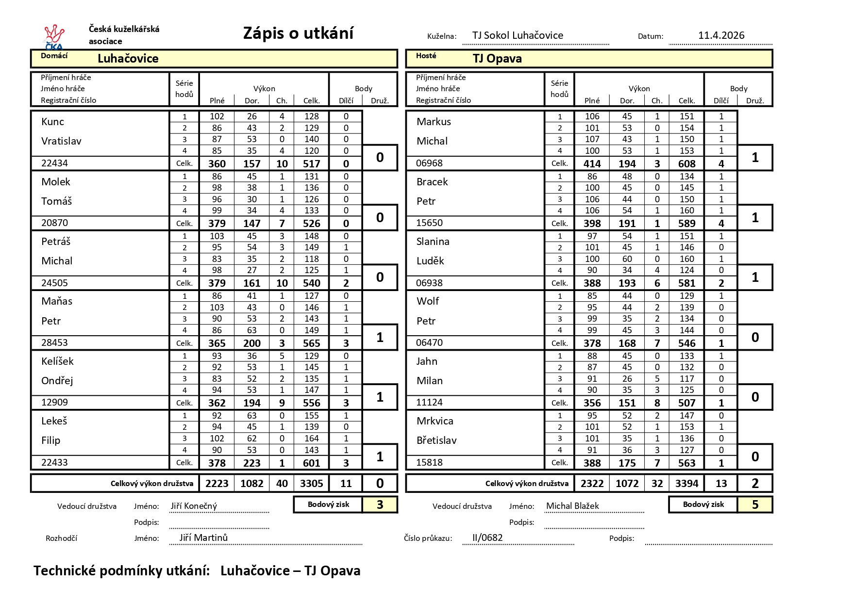 Vložil/a kuzelky.luhacovice, Po, 04/20/2026 - 08:18Aktuální výsledky 18.04.2026